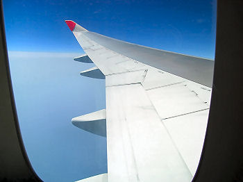 出発の日は雨模様。でも雲の上は気持ち良いくらい